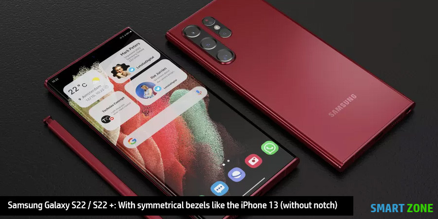 Samsung Galaxy S22 / S22 +: With symmetrical bezels like the iPhone 13 (without notch) :